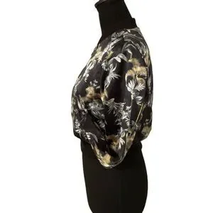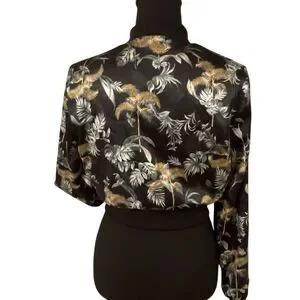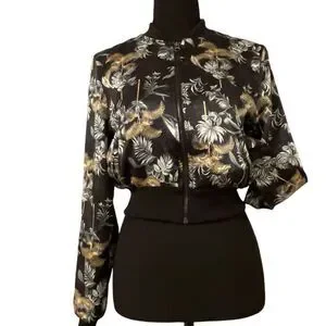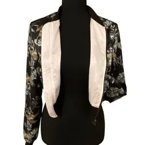 Victoria's Secret Black Luxe Palm Satin Feel Bomber Cropped Jacket