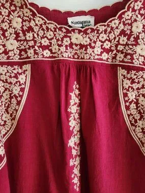 Savanna Jane Red Embroidered Boho Top Small Floral Peasant Blouse