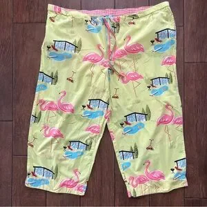 Nick & Nora Cropped Flamingo Print Wide Leg Pajama Pants Size XXL