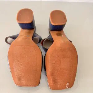L'Intervalle Julia Navy Leather Block Heel Dress Sandal