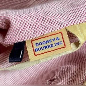 Crafted from rich croco‑embossed leather, this tote features dual exterior zip pockets, elegant leather-covered Dooney lock hangtag, and a beautifully lined interior in Dooney’s signature pink cotton twill.