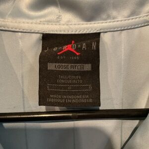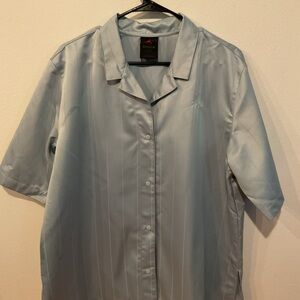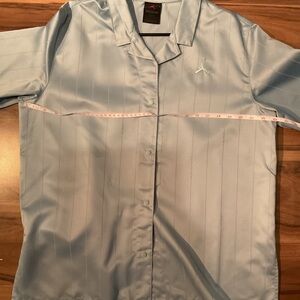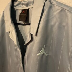 Nike Air Jordan Sky Blue Satin Button-Up Shirt – Men’s L Loose Fit Cuban Collar