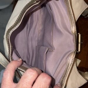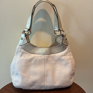 Coach F17219 Soho all leather/metallic shoulder bag ivory cream/gold 3 compart