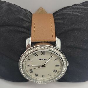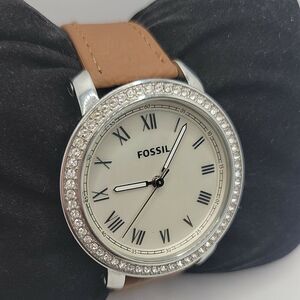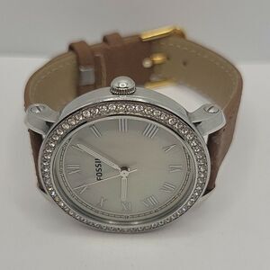 Fossil ES3112 Women Brown Leather Analog Mother Of Pearl Dial Quartz Watch BC619