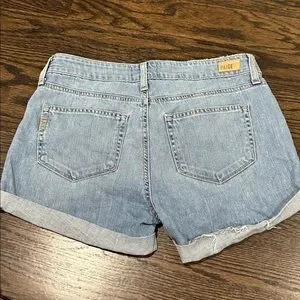 PAIGE Light Blue Distressed Jean Shorts
