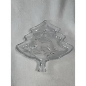 Holiday Clear Glass Tree Candy Dish w/ Bell & Flower Design