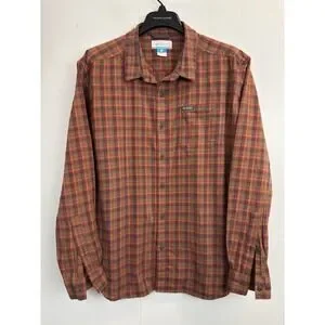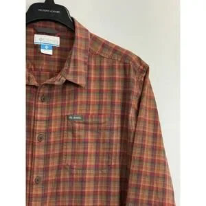 Columbia Men's XL Cornell Woods Flannel Shirt Orange Plaid Cotton Stretch