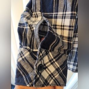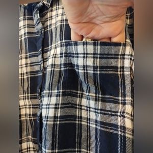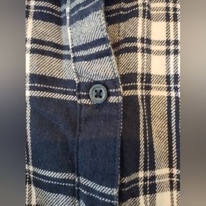 Blue and white plaid super soft flannel button down shirt.