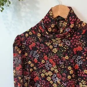 T Tahari Floral Women's Top - Black Multicolor Size Large