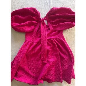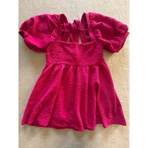 Free People Violet Mini Dress Fuchsia Pink Puff Sleeve Open Back XL