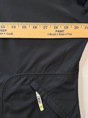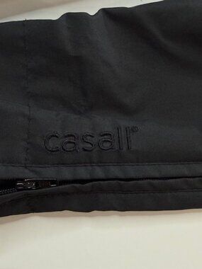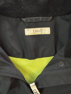 The Casall Zip-up Jacket is a versatile and stylish option for women who enjoy running or jogging. Made from polyester material, this medium-sized jacket features a cinched waist for a flattering fit. The black color adds a classic touch, making it suitable for various outdoor activities. Perfect for women looking for a comfortable and functional piece to add to their athletic wardrobe. Measurements included in photos for your sizing and fit information.
