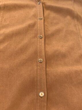 Beautiful vintage ALIA jacket in a soft faux suede / microsuede fabric in a warm camel / saddle brown color. Classic structured blazer style with western-inspired hardware details and front button closure. Great neutral layering piece for fall, western, boho, or minimalist outfits.