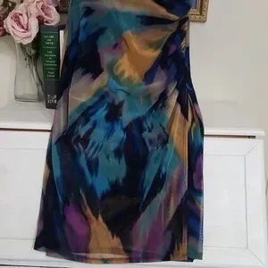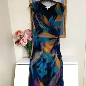 Multicolor Abstract Retro Women's Dress Size 8 Watercolor Unique Vintage