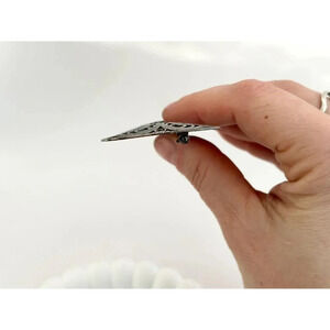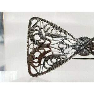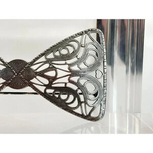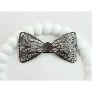 Stunning silver toned cannetille bowtie brooch. Gorgeous piece in excellent condition. c clasp enclosure. Very pretty piece. Textured front and back.