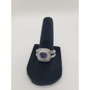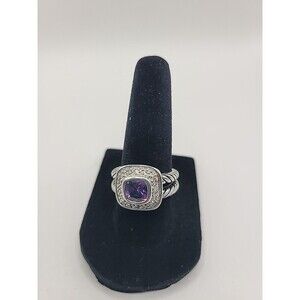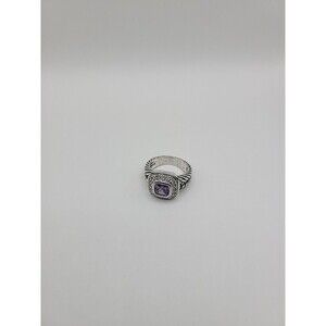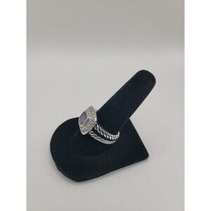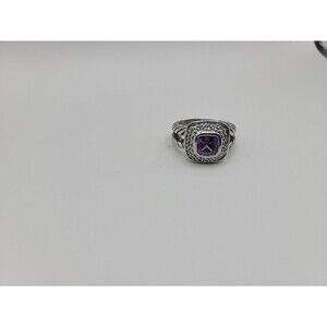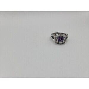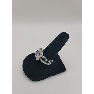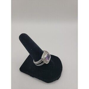 Vintage Silver Tone Purple Stone Halo Ring Rope Band Cushion Cut SZ 7