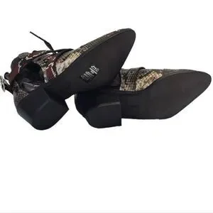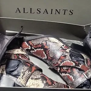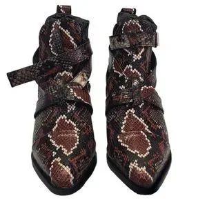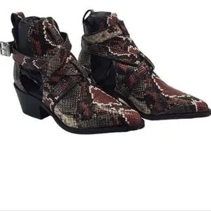 ALL SAINTS "Darcy" Red Leather Snake Print Pointed Toe Buckle Bootie 36
