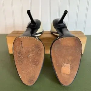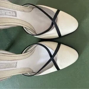 Narcisso Rodriguez Two Tone Closed Toe Heels in Cream & Black Leather *Italy*