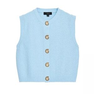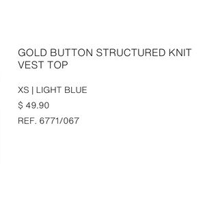 Zara Blue Gold Button Structured Knit Vest Top