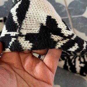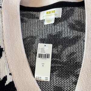 Anthropologie Black and Cream Floral Cat V-Neck Button Cardigan Sweater