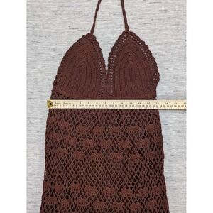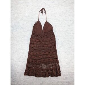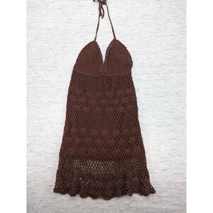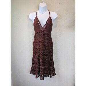 Boho Crochet Babydoll Dress Halter SMALL brown Lined Fit Flare Stretch Milkmaid