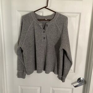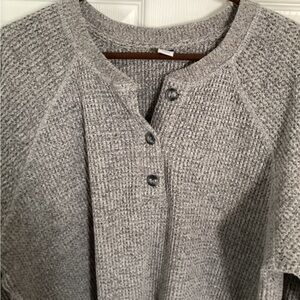 Old Navy Gray Henley Waffle-Knit Sweater