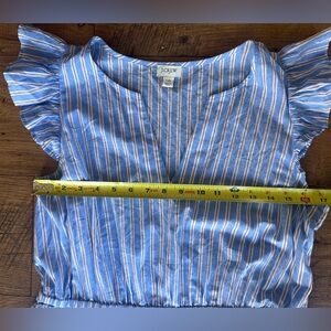 J Crew Blue Striped Tiered Midi Dress Flutter Sleeve Size 10 Cottagecore