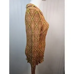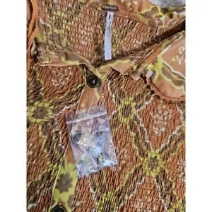 Free People Caught A Feeling Button Down Smocked Blouse Women's Size M New Retro