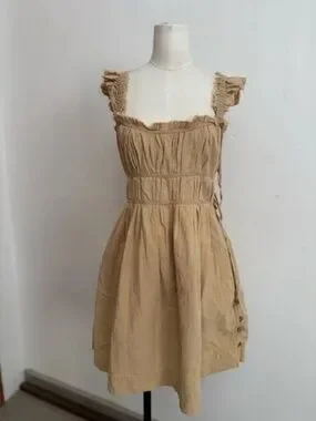 Our stunning Claude Corset top—now in a mini! This sweet style from our free-est collection is featured in a square-neck silhouette with ruffle sleeves, side-tie detail, and A-line skirt silhouette for a classic fit.