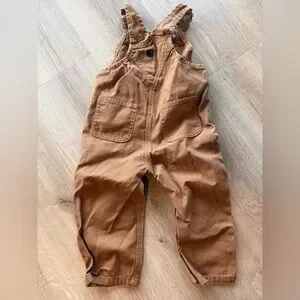 Sturdy Carhartt kids overalls in a warm rust tone. Multiple pockets for storage. Adjustable shoulder straps for fit. Reinforced knee panels for play. Classic Carhartt patch on the bib. New without tags. From a pet/smoke free home. Open to reasonable offers.