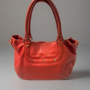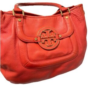 Tory Burch Amanda Red/Orange Pebble Leather Logo Hobo Shoulder Bag No Strap