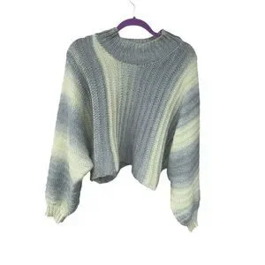 Pol Small over sized crop puff batwing long sleeve dark light green sweater