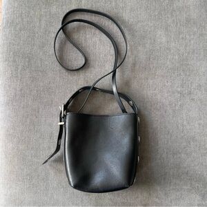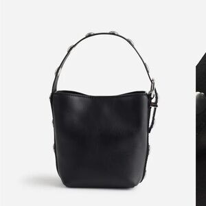 Madewell The Essential Micro Bucket Tote Black Silver Grommets Leather
