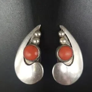 Vintage Sterling Silver Earrings with Red Stone Cabochons