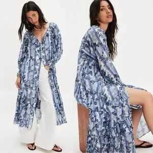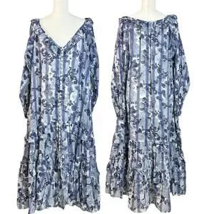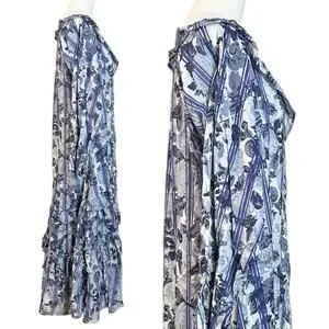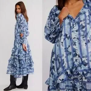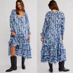 Free People Dainty Ruffle Cottage Garden Wonders Maxi Dress in Blue Combo Large