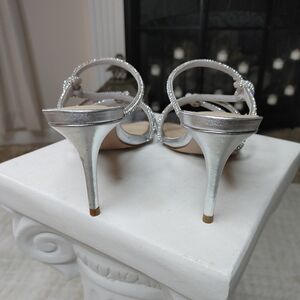 Schutz Women's Lauryn Cristal Metallic Sandal 9B