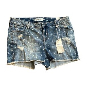 Torrid Heart Print Denim Cutoff Shorts NWT Size 18 Raw Hem Distressed