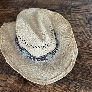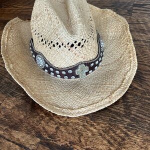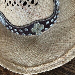 Western Cowgirl Raffa Straw Hat Band Rhinestone Cross Y2K Cowboy Boho Medium