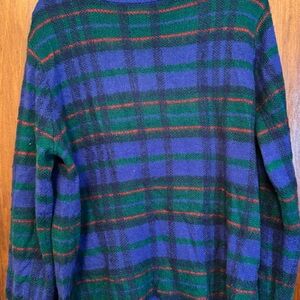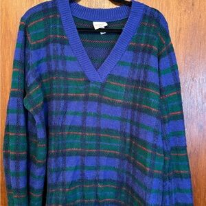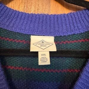 V neck sweater from Saint John’s Bay. Green, red and blue colors throughout.