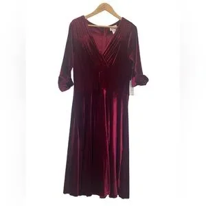 NWT Burgundy Red Velvet Unique Vintage Delores Dress - Size 1X/16
