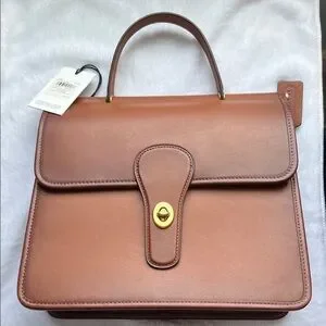 Coach Willis top handle. Tan Brown Leather Top Handle Satchel with Gold Turnlock