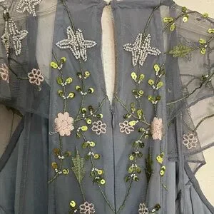 ASOS EDITION mesh halter sleeveless maxi dress with floral embroidery in gray