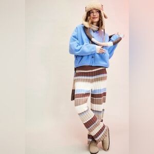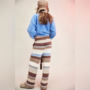 Free People Striped Knit Wide-Leg Pants in Brown, Blue, Cream