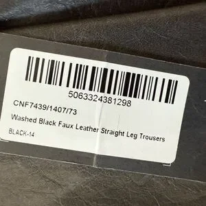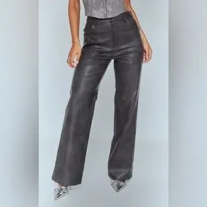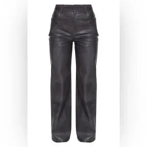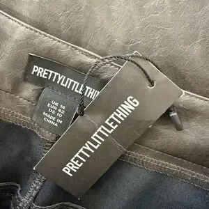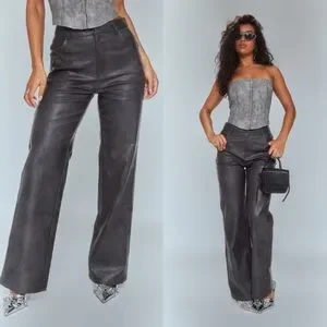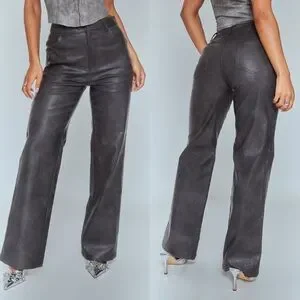 Pretty Little Thing Washed Black Faux Leather Straight Leg Trousers US 10 New