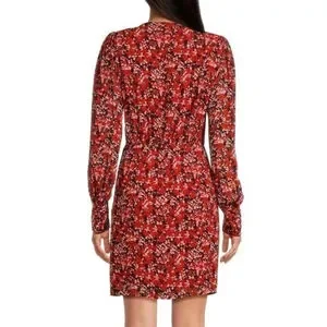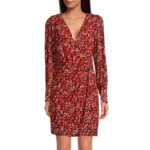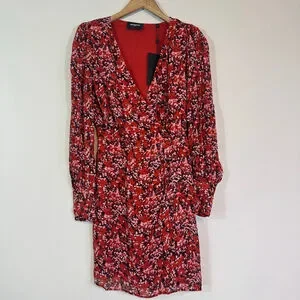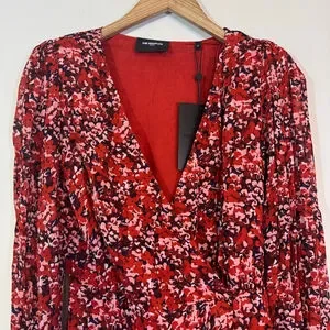 THE KOOPLES Burning Flowers Red Floral Mini Wrap Dress Size 0 NWT MSRP $385