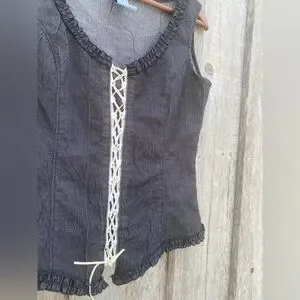 VINTAGE corset style lace up front denim sleeveless top size medium