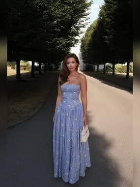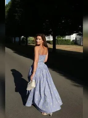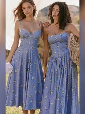 House of CB Ysabella Blue Daisy Print Stretch Cotton Midi Sundress (Regular A-C)