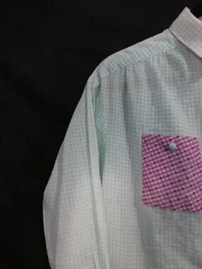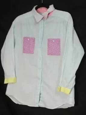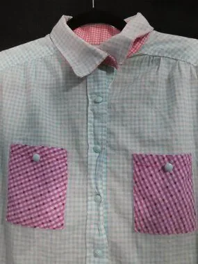 Handmade Pastel Colorblock Gingham Button-Down Shirt - P2P 21"