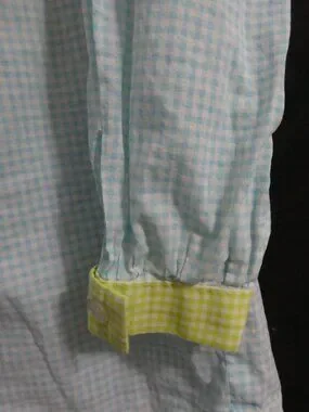 The main body is a refreshing light mint green gingham, beautifully contrasted with vibrant pink gingham chest pockets and collar trim, and finished with bright yellow cuffs
