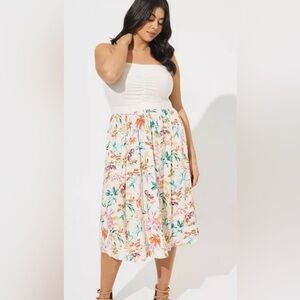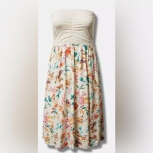 Torrid Women’s Midi Jersey Challis Sweetheart Tube Dress with Floral Print Sz 2X NWT new excellent condition. Embrace elegance with this floral print midi skirt with cream color tube top. Perfect for any occasion, this skirt features a beautiful blend of colors that add a touch of sophistication to your wardrobe.