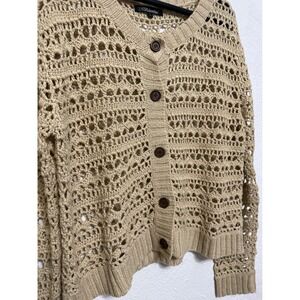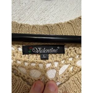 Valentine Large Crotchet Knit Cardigan Top Women's Beige Tan Cream Versatile Vtg